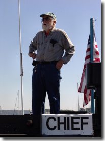 On September 21, 2005, Stephen Jones orchestrated a 13-mile trip with the lantern through Fisher’s Island Sound and Long Island Sound aboard his tugboat CHIEF, as Geoffrey Jones stood at the helm and skillfully guided the vessel along its exciting journey to the Shennecossett Yacht Club. Jones explains why the nearly 2,000-pound lantern was transported by water rather than over land, noting, “The best way to get it to Avery Point and avoid all the low-hanging branches and wires over the streets of Groton was to do it by boat.”
